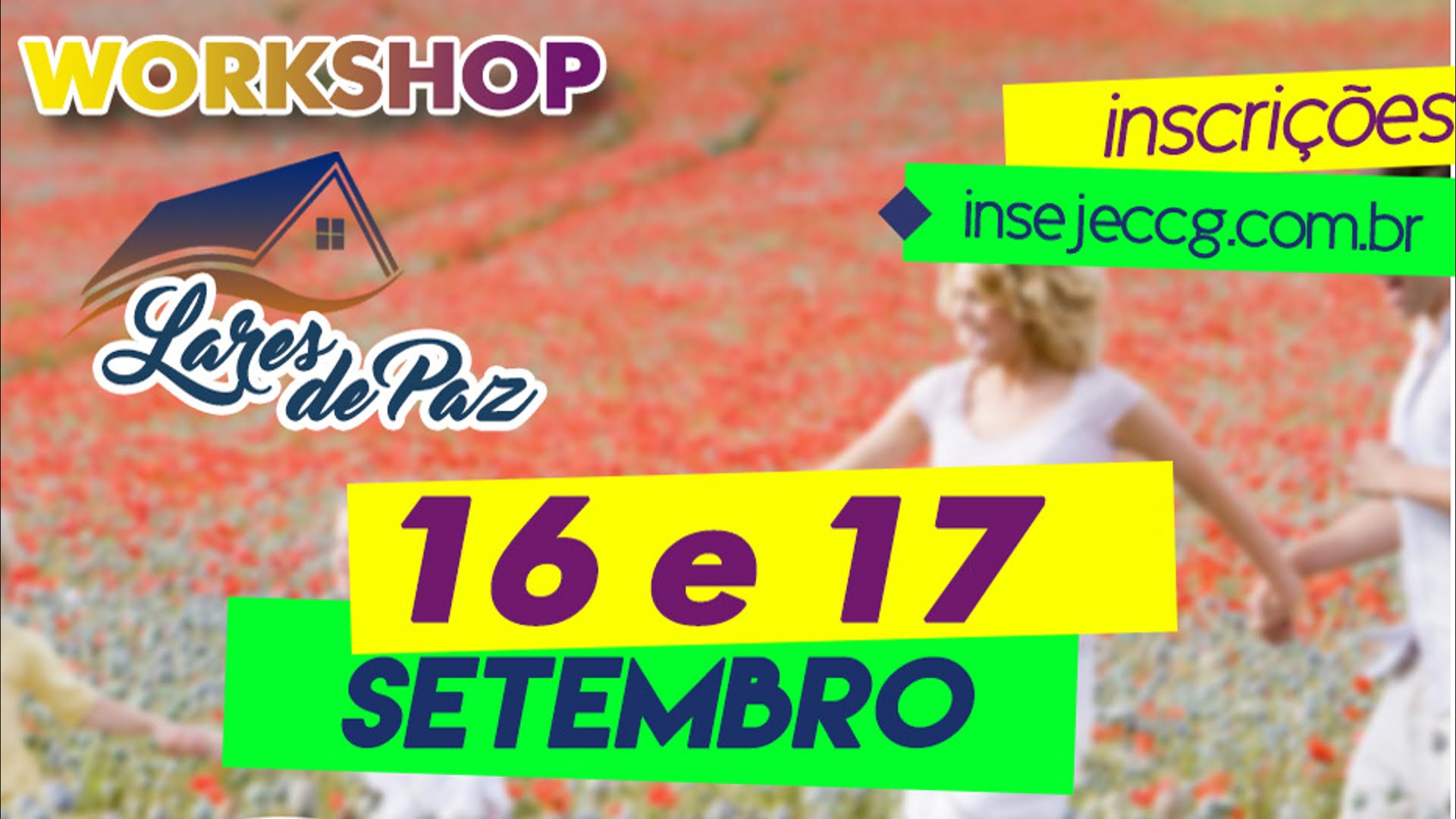 Estão abertas as inscrições para o primeiro Workshop Lares de Paz, que será realizado nos dias 16 e 17 de Setembro, no Garden Hotel, em Campina Grande. Para realizar sua inscrição basta acessar o site www.insejeccg.com.br e preencher o formulário de inscrição. O valor do ingresso é R$ 50,00 por pessoa.