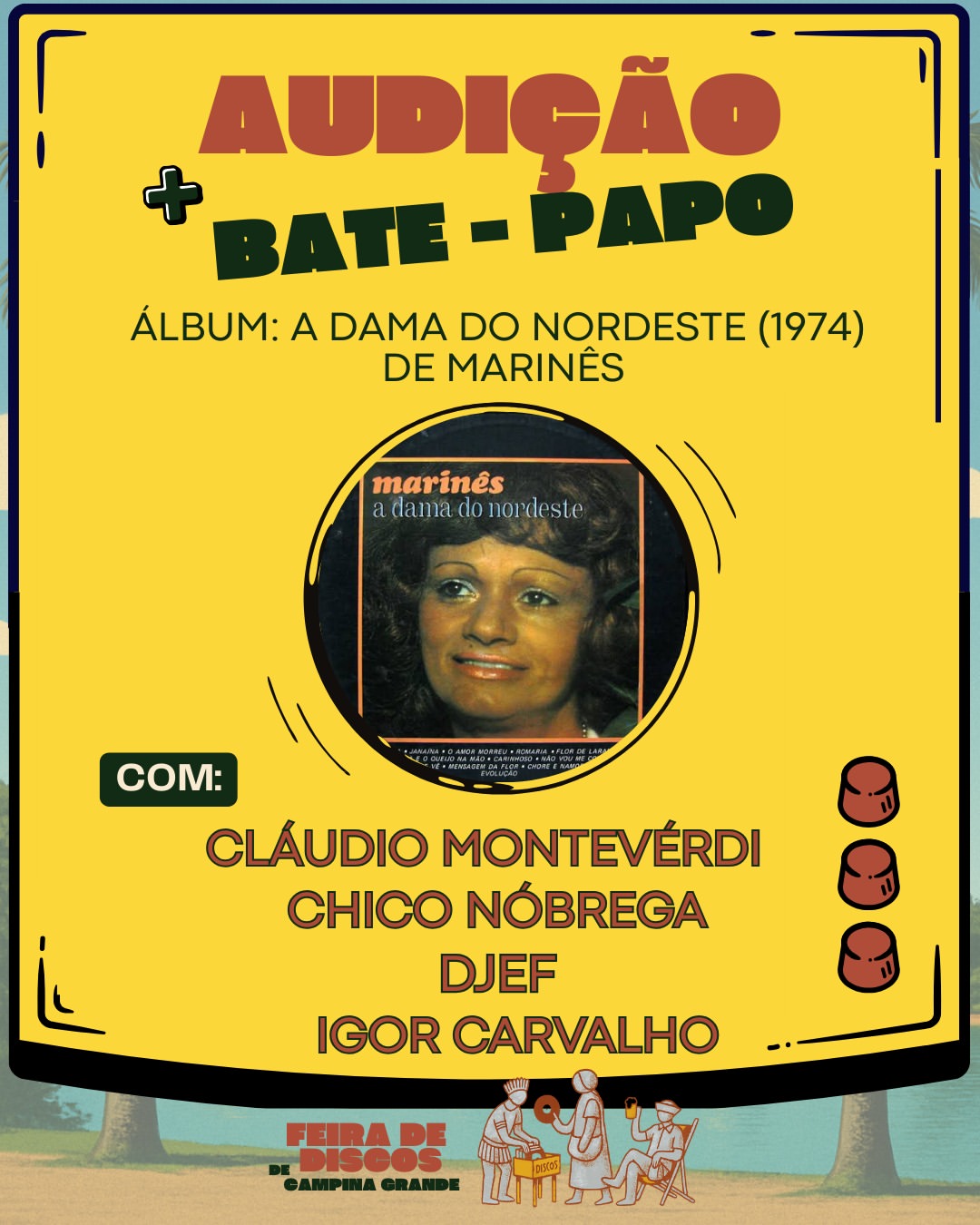 Neste sábado (30), a partir das 12h, o Centro Artístico Cultural (CAC) da Universidade Estadual da Paraíba (UEPB) recebe a 1ª Feira de Discos de Campina Grande. A programação inclui uma audição e um bate-papo sobre o álbum “A Dama do Nordeste”, lançado pela Rainha do Xaxado, Marinês, em 1974. A entrada é franca.