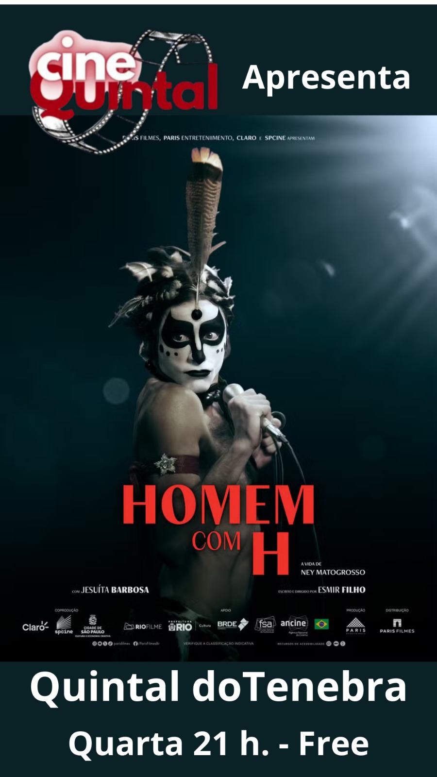 O projeto Cine Quintal realiza mais uma sessão especial de cinema em Campina Grande e desta vez o público poderá conferir o filme “Homem com H”, produção inspirada na vida e na trajetória artística de Ney Matogrosso, um dos artistas mais icônicos da música brasileira.