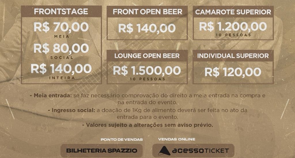 Garanta já o seu ingresso na Megga Shoes (Shopping Luiza Motta), na bilheteria do Spazzio ou CLICANDO AQUI.