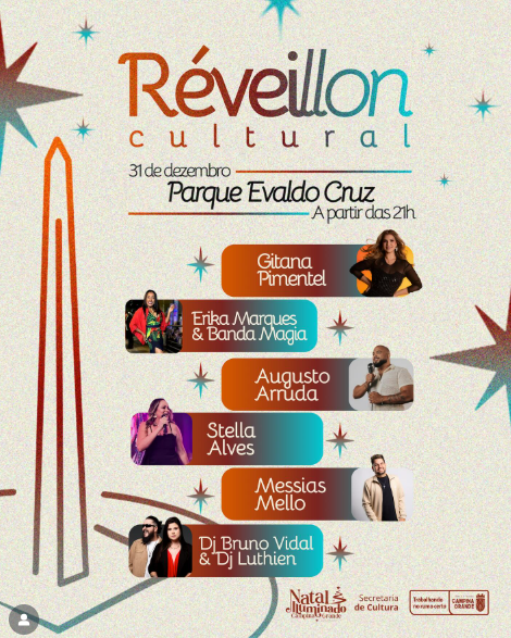 Pela primeira vez, o Réveillon de Campina Grande será realizado no Parque Evaldo Cruz, marcando a chegada de 2026 com uma grande celebração aberta ao público. A festa contará com dois palcos, ambientação especial e uma programação musical que reúne diferentes estilos e gerações.